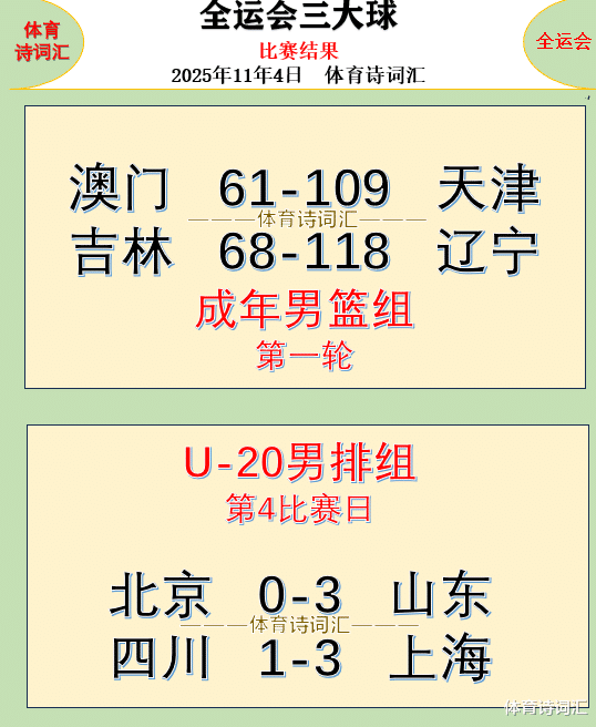 距离第十五届全运会开幕越来越近中祥网,足篮排三大球的比赛项目密集开赛中,今天中午一点,成年男篮组比赛正式拉开帷幕,开启第一轮的比拼,而U-20男排组的比赛则进行了第四轮的较量。